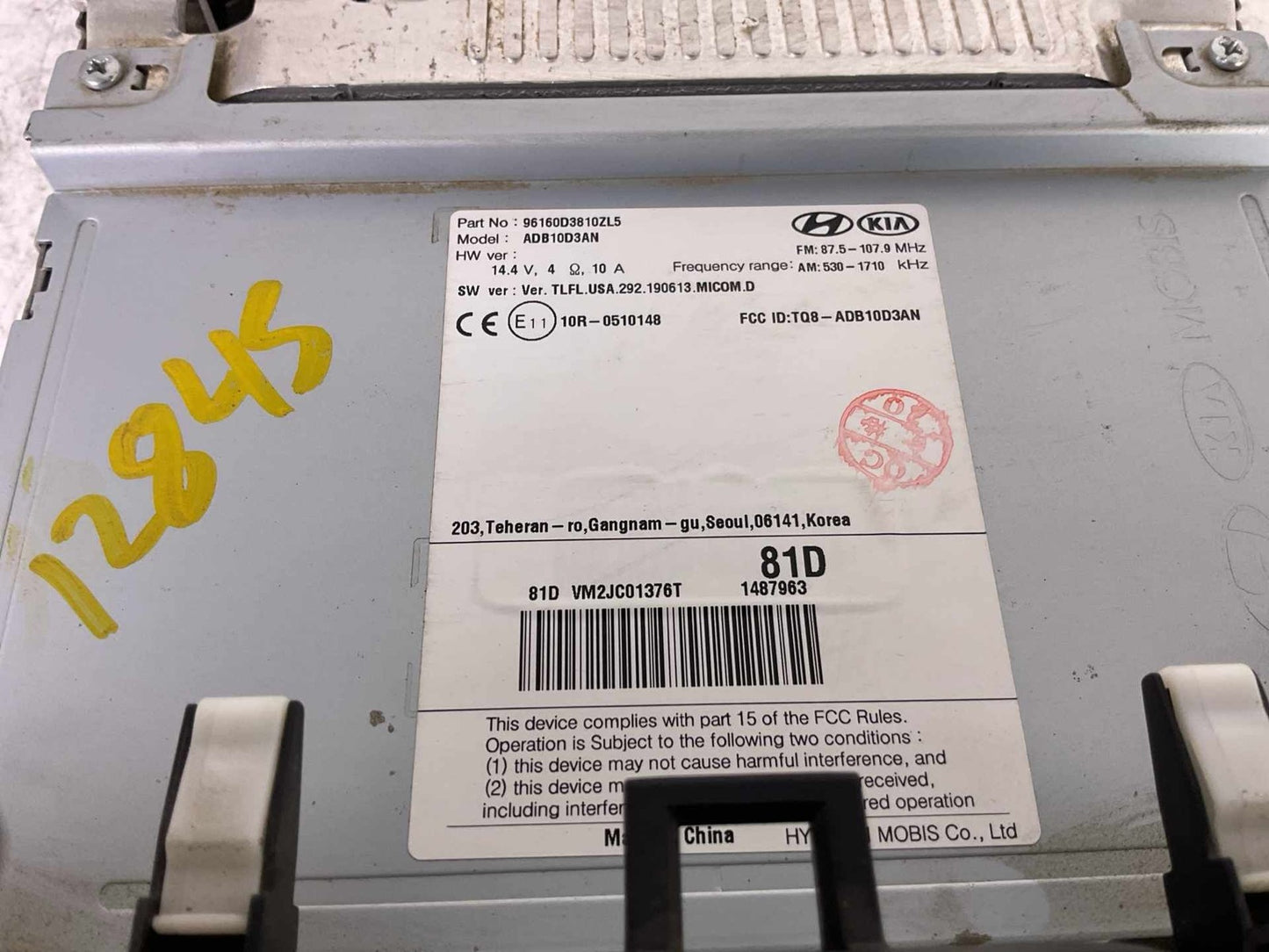 - Additional notes: Audio Assembly, W/o Navigation; 7", Rdo, Us Market, Id 96160d3810 (not Verified)